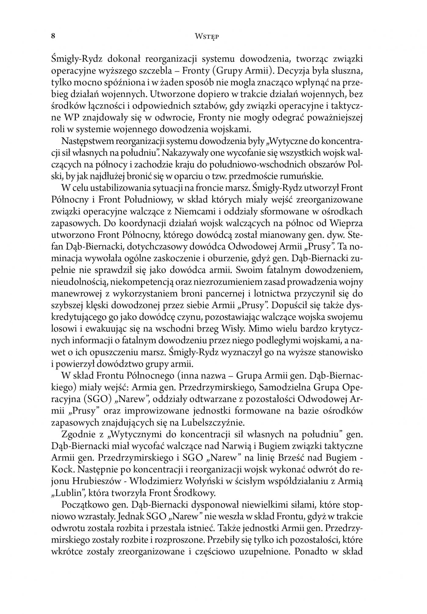 Stanisław Maksimiec to autor znany czytelnikom zainteresowanym problematyką przebiegu kampanii 1939 roku na Lubelszczyźnie. Owocem jego dotychczasowych zainteresowań była zarówno Armia „Lublin” (2006), jak i jedna z jej jednostek – Warszawska Brygada Pancerno-Motorowa (2019). Obecnie autor ten przekazuje do rąk czytelników swe najnowsze studium historyczno-wojskowe poświęcone improwizowanemu w ogniu walk wyższemu związkowi operacyjnemu, jakim był Front Północny dowodzony przez gen. dyw. Stefana Dęba-Biernackiego. Jest to pierwsza w polskiej historiografii próba całościowego przedstawienia okoliczności utworzenia i działań tego wyższego związku operacyjnego.