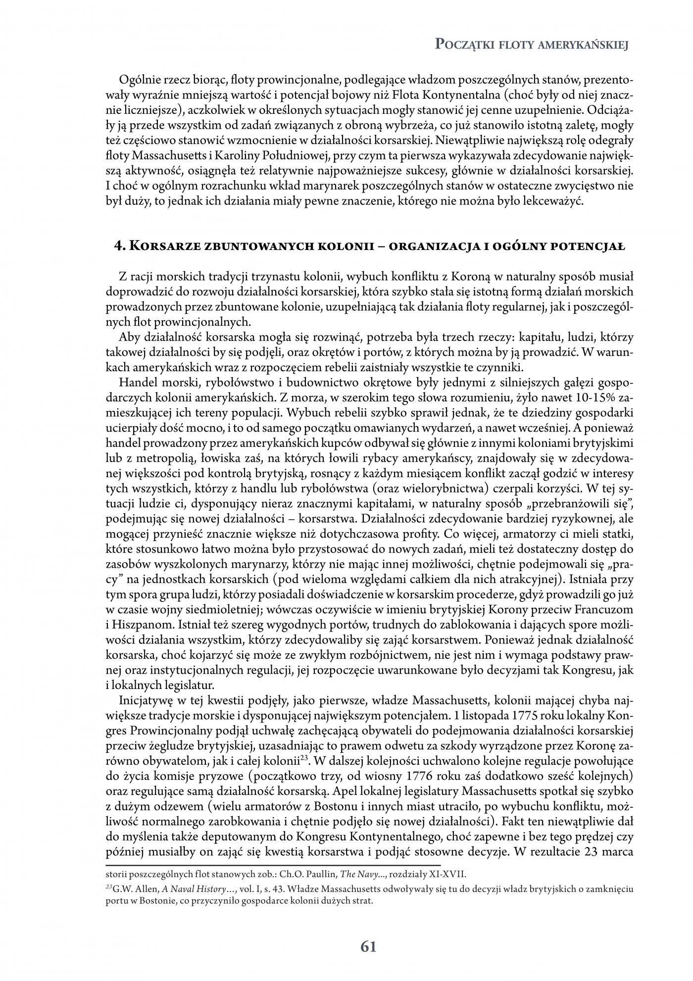 Ambicją autora niniejszej książki jest przedstawienie w pierwszej kolejności owych operacji morskich wojny o niepodległość Stanów Zjednoczonych. Aby jednak czytelnik zrozumiał ich zasadność i znaczenie, w książce ukazane zostały też, choć w sposób jedynie szkicowy, działania lądowe, w dużym stopniu bezpośrednio lub pośrednio powiązane z operacjami morskimi. Całość kończy podsumowanie przedstawiające bilans strat i korzyści walczących stron, tak w wymiarze politycznym, gospodarczym, jak i militarnym, a także wpływ wojny na rozwój morskiej sztuki wojennej.