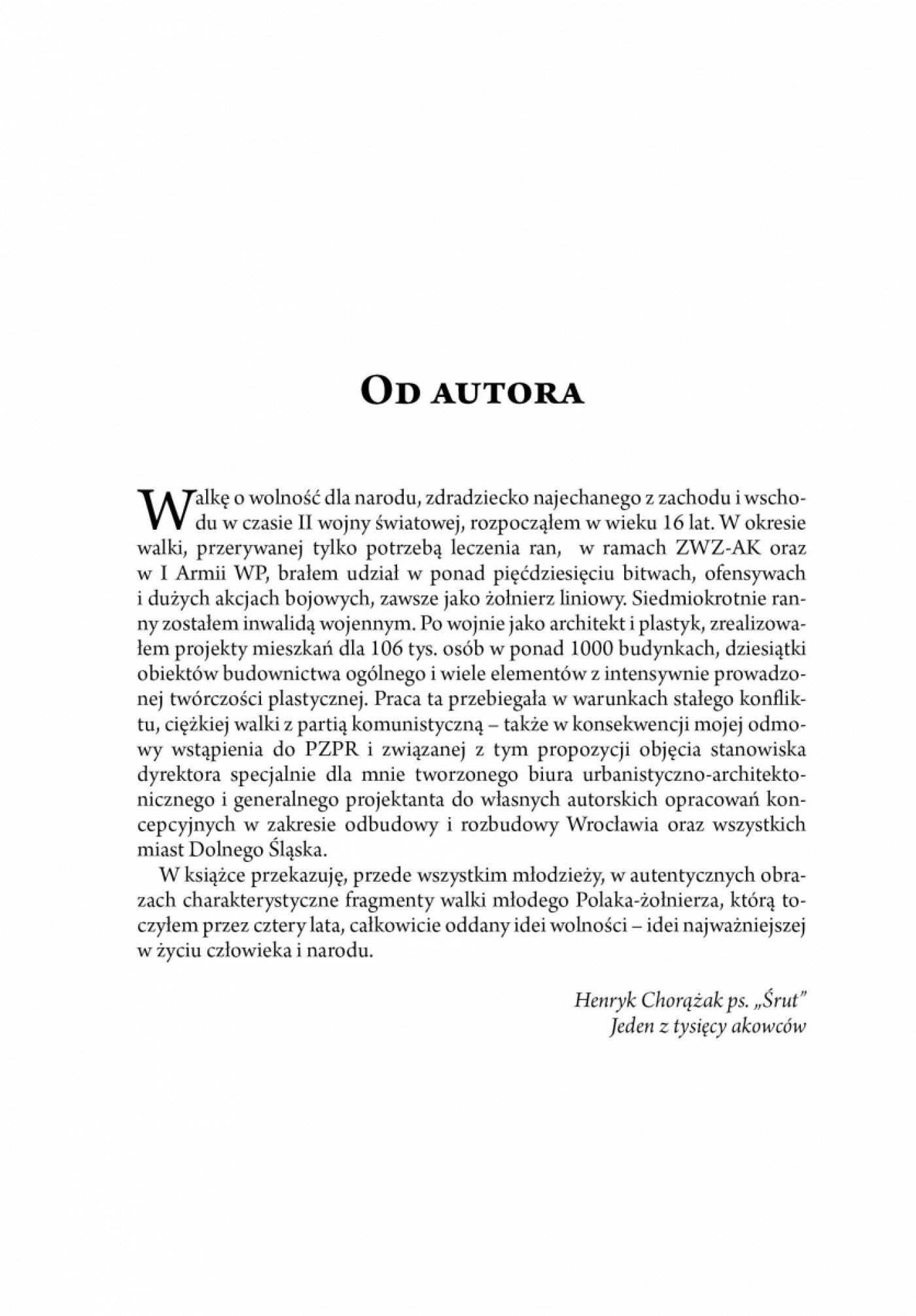 Materiały zaprezentowane w książce, uzupełniane przez autora na przestrzeni lat o refleksje związane z bieżącą sytuacją polityczną kraju i kondycją społeczeństwa polskiego, zostały podzielone na trzy zasadnicze części. Część I stanowią wspomnienia autora z okresu II wojny światowej, w której ukazane zostały jego losy jako żołnierza Armii Krajowej Okręgu Wileńskiego, członka partyzanckiego oddziału AK „Błyskawica” oraz historia powstania unikalnego planu topograficznego centrum Wilna. Część II została poświęcona szczegółowemu omówieniu koncepcji dotyczących powstania i zdobycia Wilna, a przede wszystkim przedstawieniu dopracowanego przez Henryka Chorążaka planu powstania wileńskiego, do którego autor bezskutecznie próbował nakłonić dowództwo lokalnej AK. W części III autor przedstawia swoje losy w realiach PRL. Henryk Chorążak opisuje w niej codzienną walkę nie tylko z absurdami życia w Polsce Ludowej, ale przede wszystkim z bezwzględnością działań przedstawicieli aparatu władz i lokalnych elit w stosunku do silnych osobowości, broniących się konsekwentnie przed wchłonięciem przez ideologię i świat kształtowany przez partię. Główną część publikacji uzupełniają refleksje i rozważania poświęcone Józefowi Piłsudskiemu – centralnej postaci w życiu autora, którego biografia wpłynęła w ogromnym stopniu na ukształtowanie się postawy patriotycznej Henryka Chorążaka – oraz przemyślenia związane z polityką USA w stosunku do Polski na przestrzeni kilkudziesięciu lat.